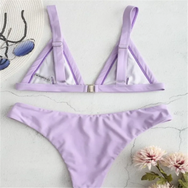 2020 Hot Sexy Triangle Bikini Set Swimsuit Women Backless Solid Swimsuit Women Swimwear Push Up Bikinis Beachwear for SummerBuy Now On Aliexpress
