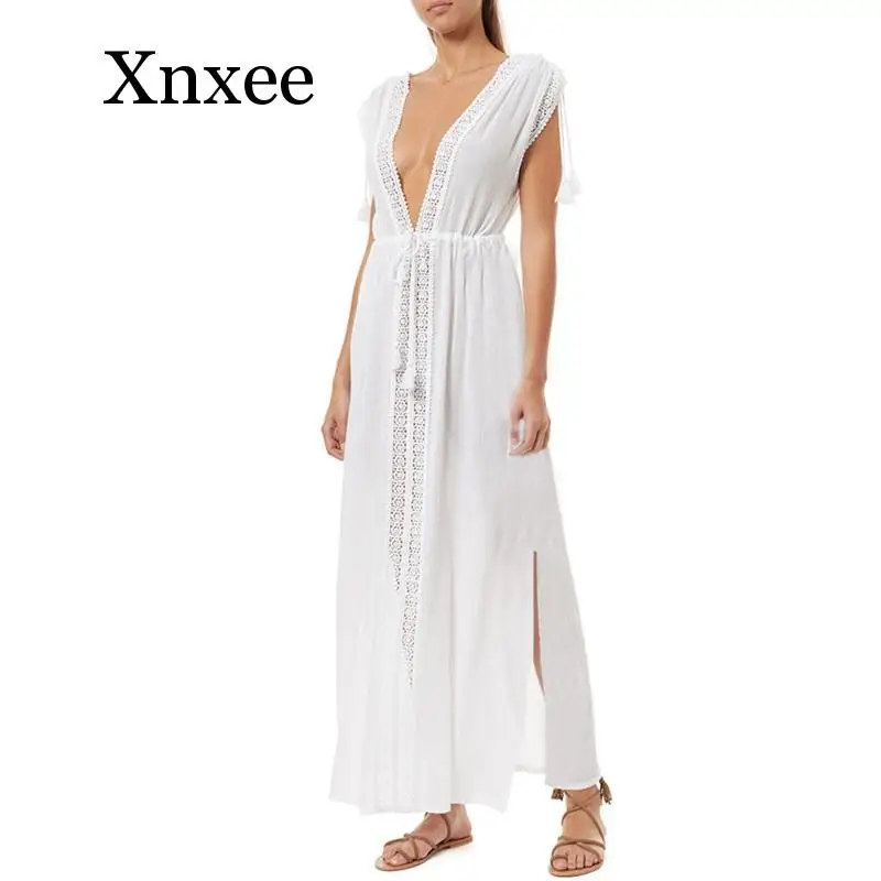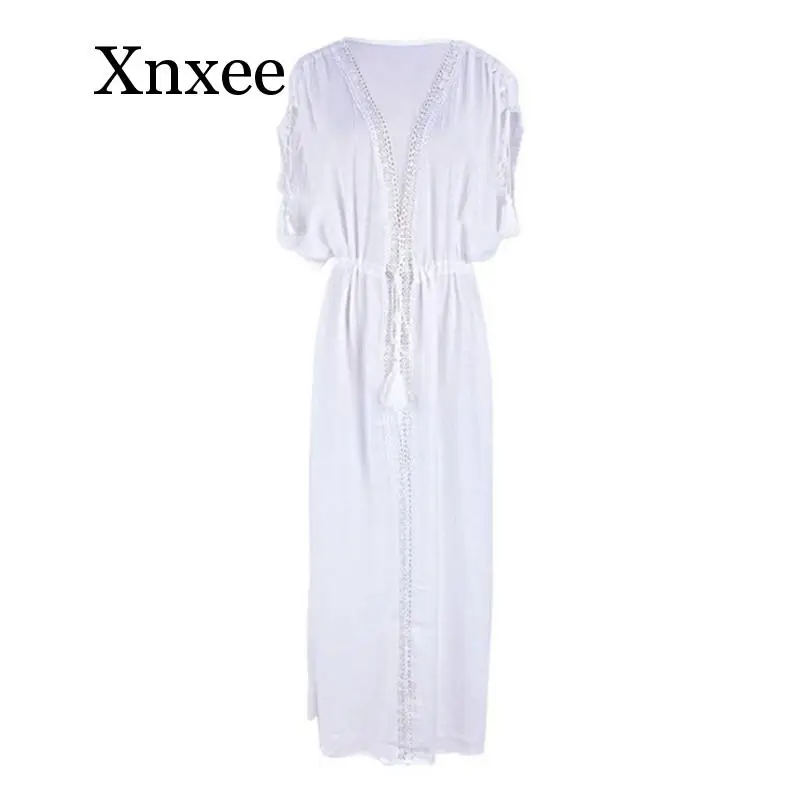 2020 summer Crochet White Knitted Beach Cover up dress Tunic Long Pareos Bikinis Cover ups Swim Cover up Robe Plage Beachwear