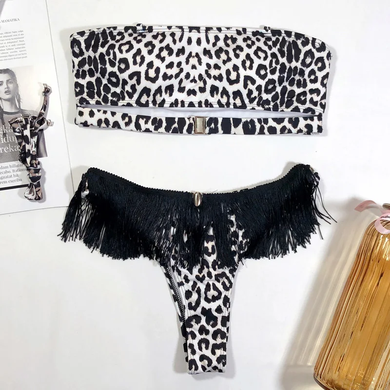 Riseado Sexy Leopard Swimwear Women Bandeau Bikini Set 2020 New Brazilian Biquini Tassel Bikinis Micro Bathing Suits Swimsuit