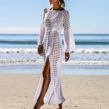 Best Price Comparison With Sexy Hollow Transparent Beach Tops Women Elegant White Long Dress Summer 2020 Beachwear Black Sundress Split Knitted Dresses