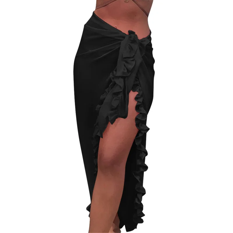 VERTVIE 2020 One Piece Women Beach Skirt Ruffles Sarong Bikini Cover Up Chiffon Wrap Skirts Swimwear Summer Bathing Swimsuits