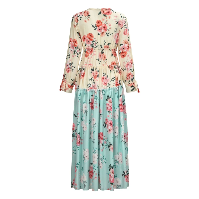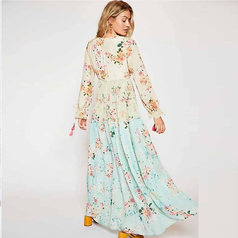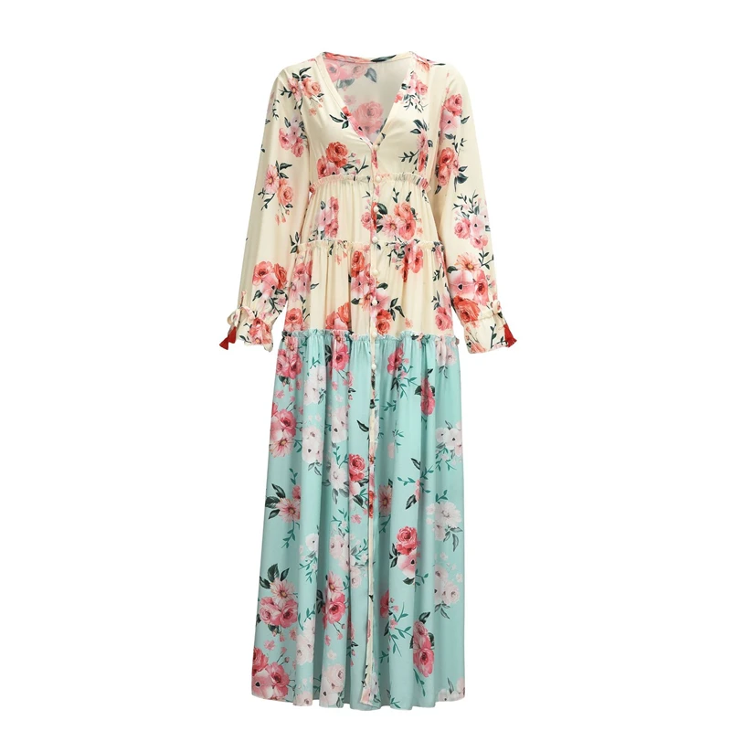 High Waist Print Stitching Beach Dress Sexy Chiffon Beachwear Swimsuit Loose Dress Women Bohemia Bikini Bathing Suit Cover Up