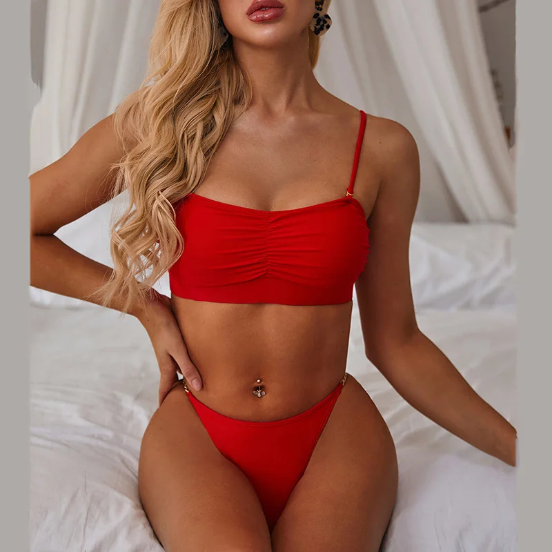 Buy Now On AliexpressBandeau swimwear women Sexy solid bikini 2020 mujer Shiny swimsuit female Sparkly bathing suit Summer bathers two piece suits